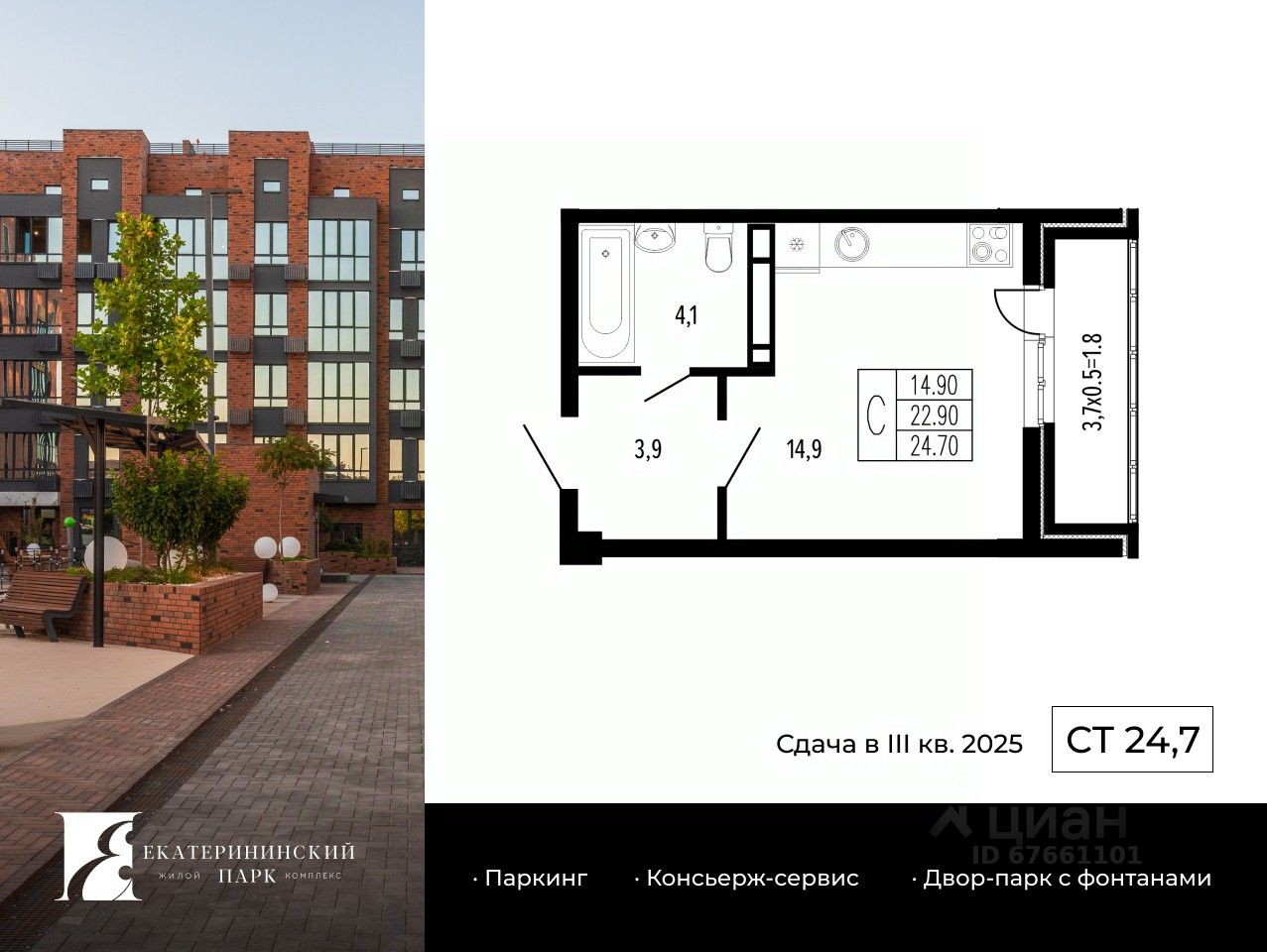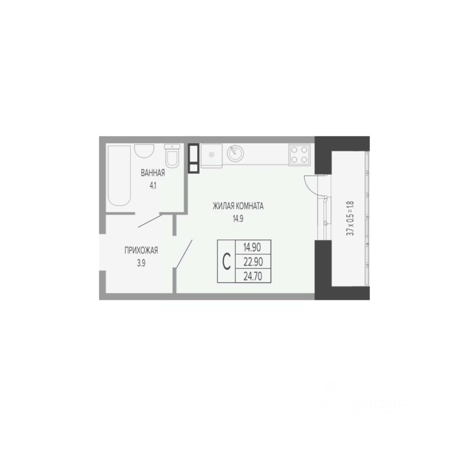 Общая площадь25,7 м2
