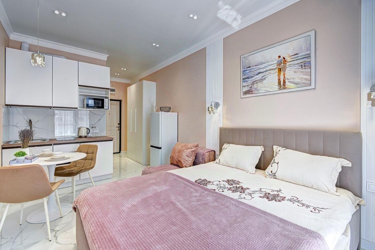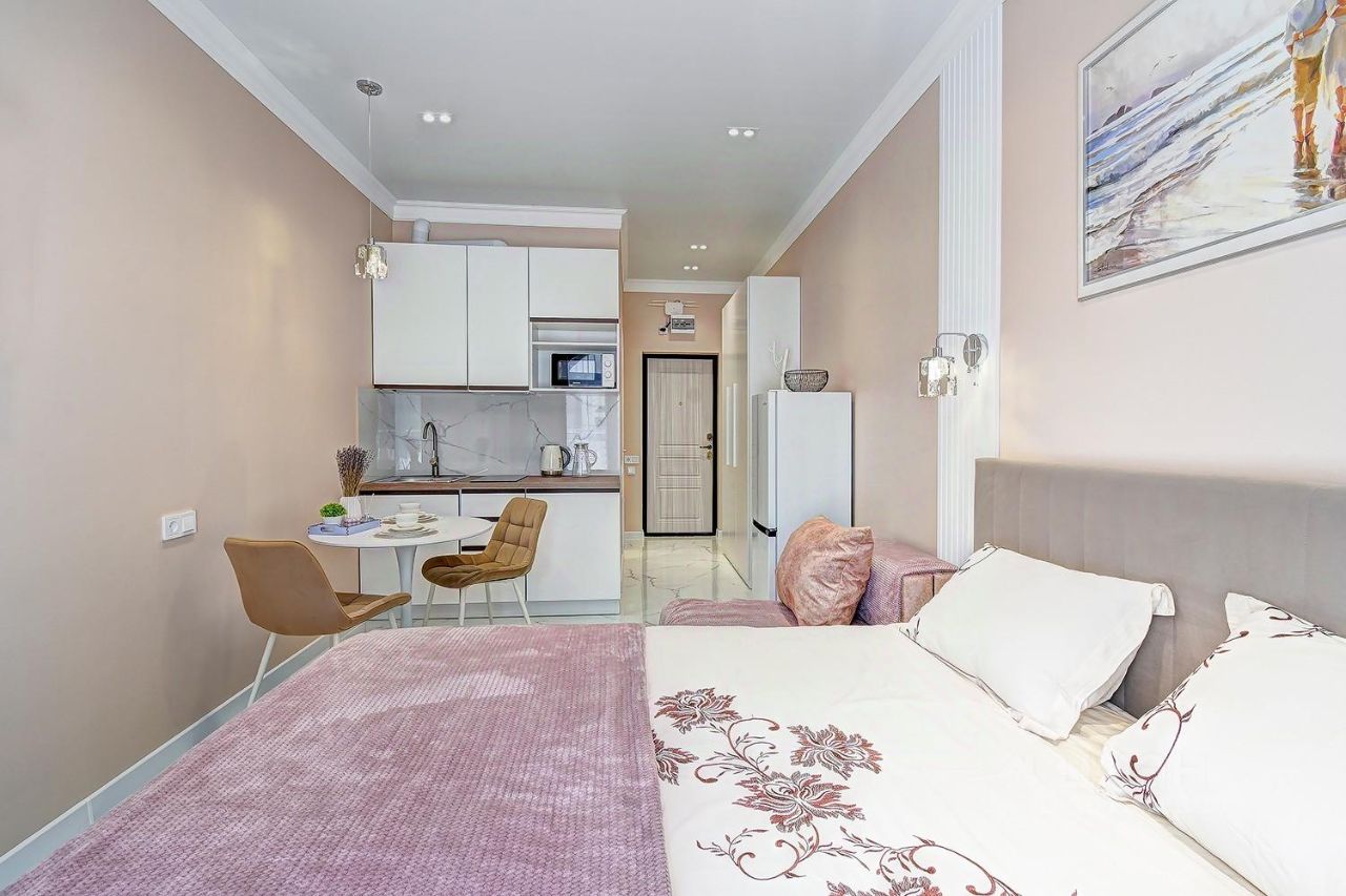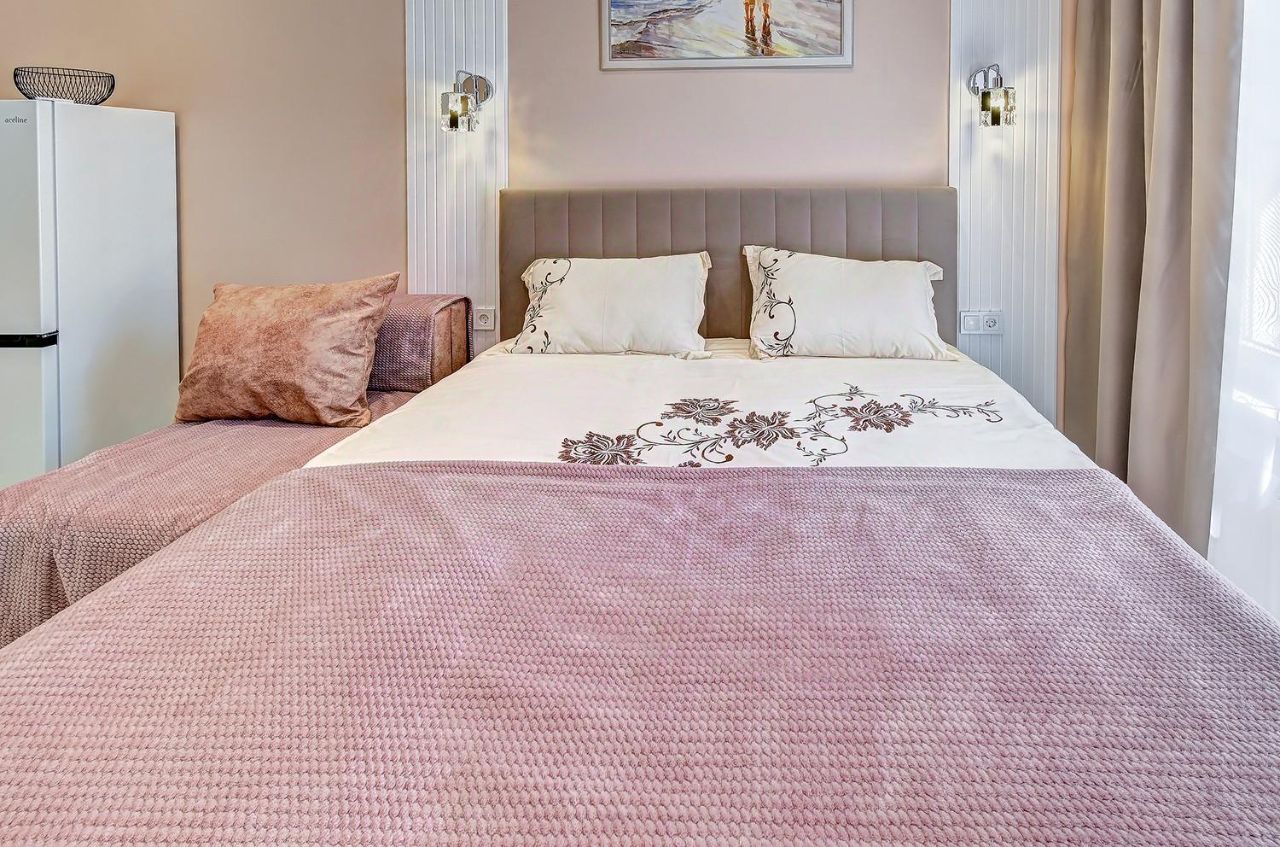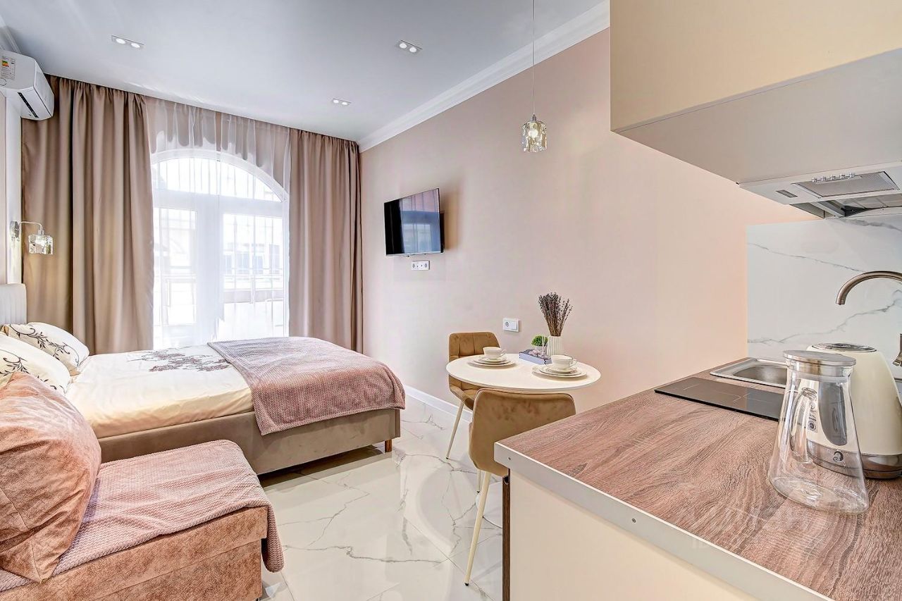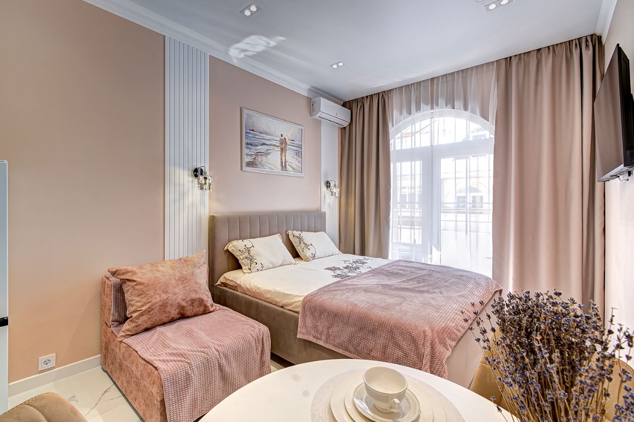 В квартире сделан евроремонт, все продумано до мелочей для вашего комфорта. В комнате и на кухне есть вся необходимая мебель, а также бытовая техника: кондиционер, холодильник, телевизор, стиральная машина. Ванная комната оборудована душевой кабиной. В квартире также есть балкон, где можно наслаждаться свежим воздухом и видом на двор.
