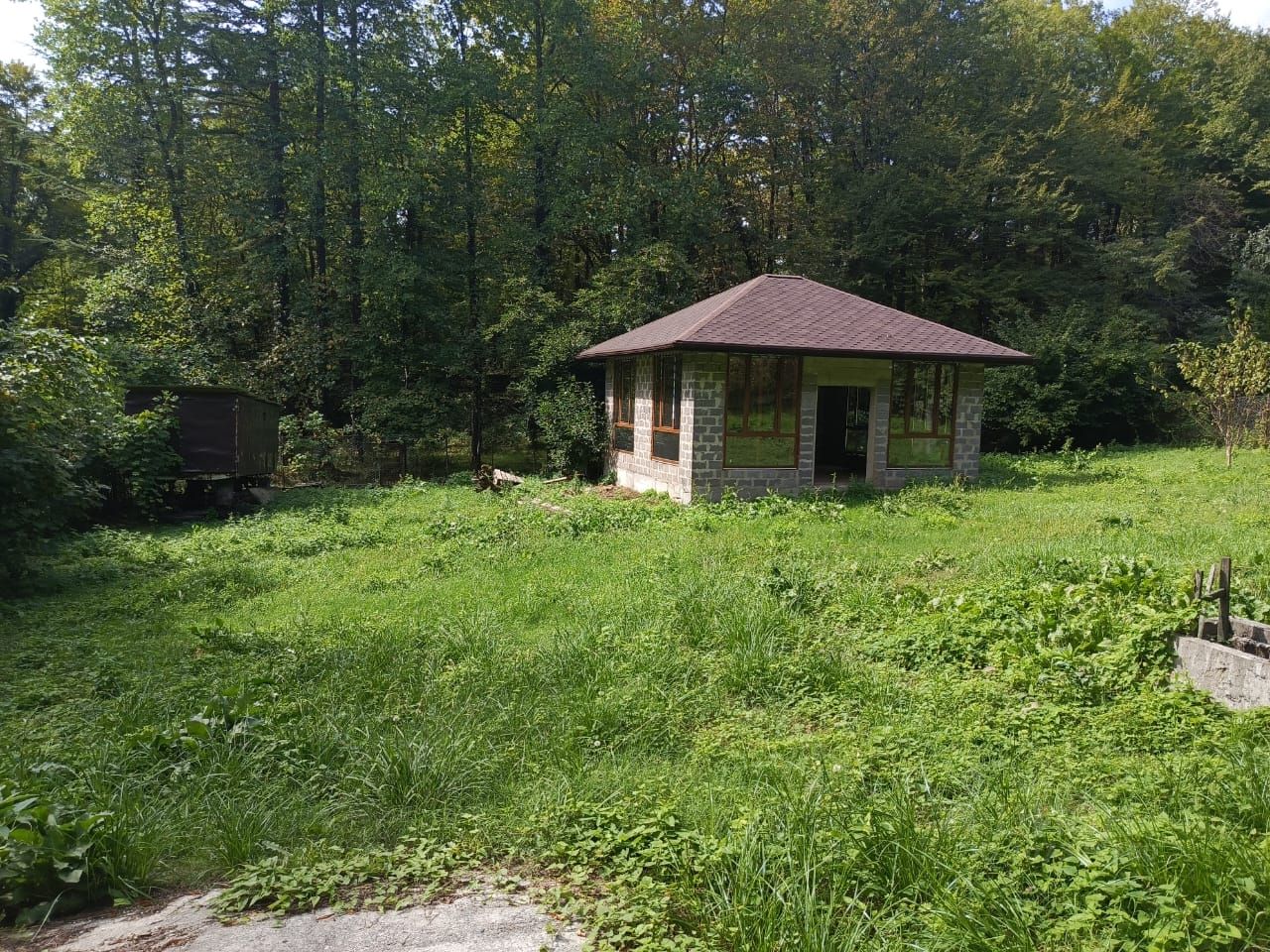 уютный в лесу шаговой доступности скайпарк идеально подойдёт для глэмпика или гостевого дома. свет подключён скважина на участке