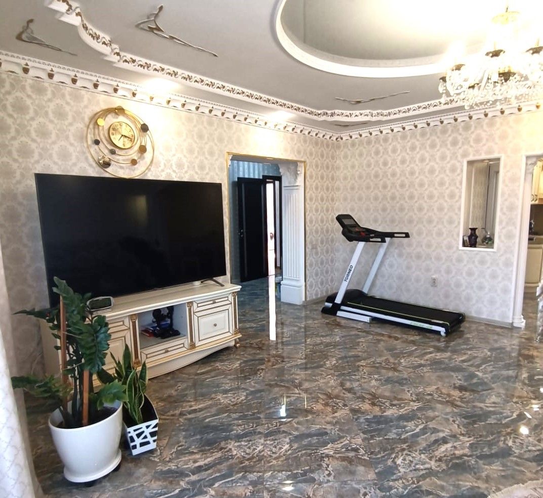 В доме современная мебель и бытовая техника .