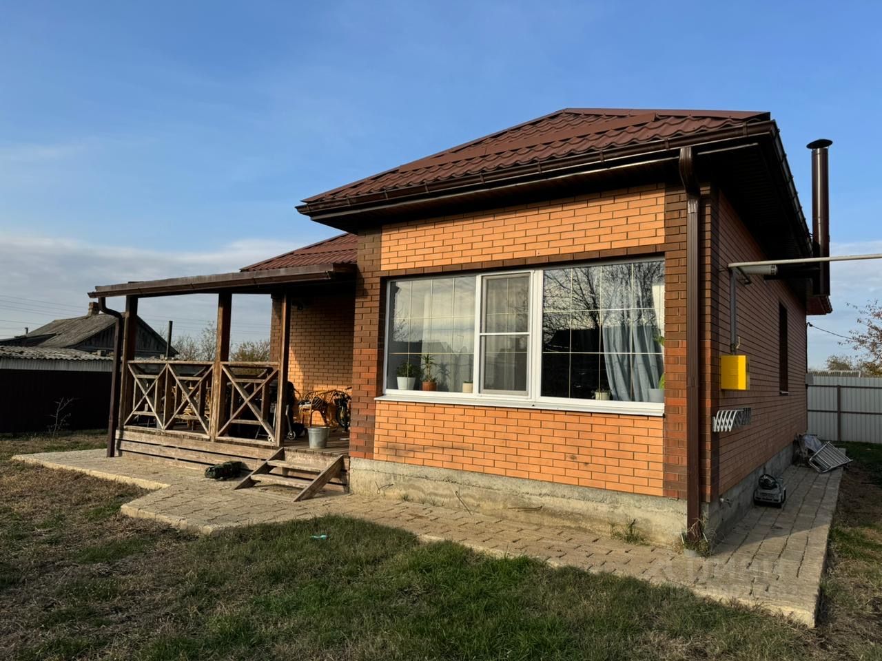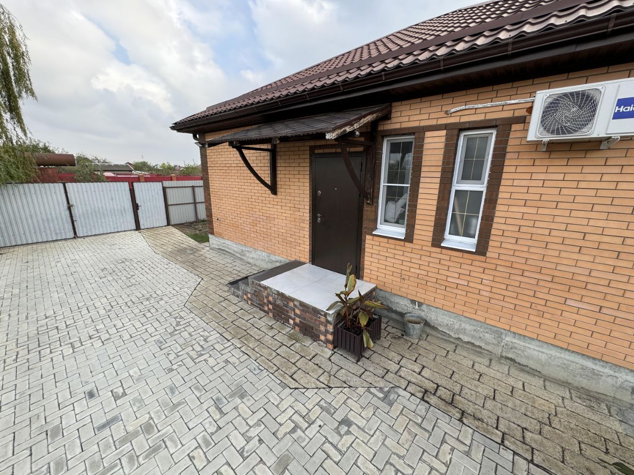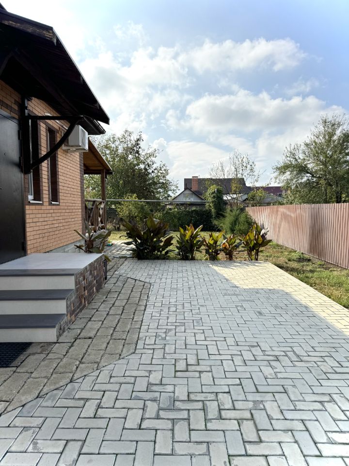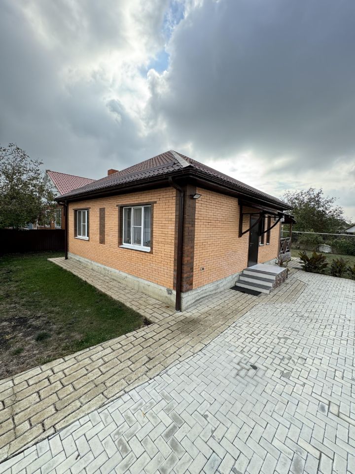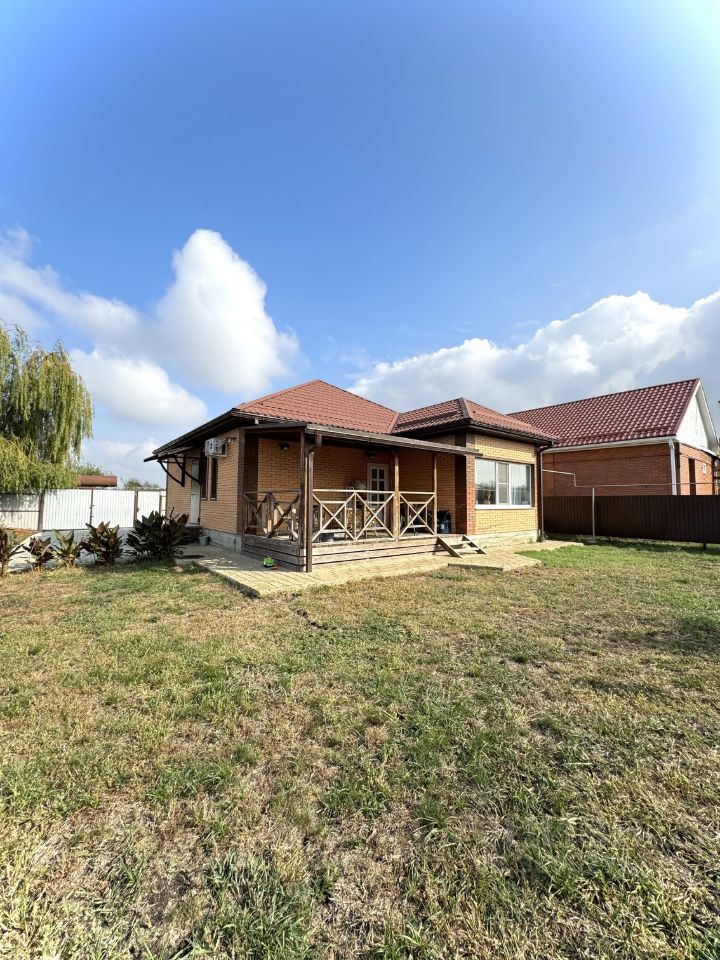 Собственник! Продам 1-этажный кирпичный дом площадью 80.1 кв. м. в станице Новодмитриевская. Наружный кирпич керамический, внутренние стены из утепленного кирпича Протерм. Терраса 10 кв. м из деревянного бруса со стороны сада. Площадь участка 5 соток. Дом жилой, с евроремонтом, тёплый пол везде где плитка, три комнаты и кухня-столовая. Газифицирован, своя скважина 50 м, система фильтрации и умягчения воды в доме, двухконтурный котёл Navien. Канализация - септик переливной. Придомовая вокруг дома и парковка в тротуарной плитке. В доме остаётся кухонная мебель и техника (кроме холодильника) стол и стулья, сплит Haier. В ванной остаются шкафы. В спальне остается кровать. Документы в порядке, без обременений и ограничений. Продажа за наличку. Никто не прописан. Агентам звонить только с клиентом.
