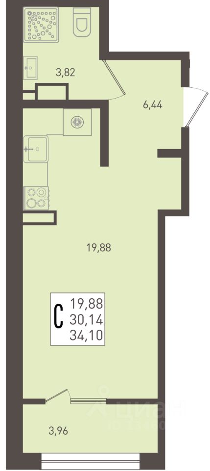 Общая площадь34,1 м2