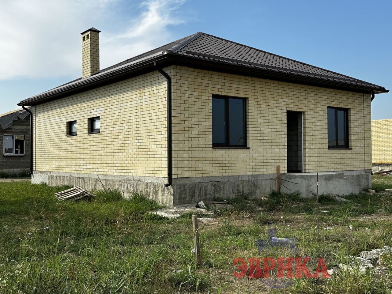 О доме: стены: блок, облицован кирпичом, утеплены пенопластом, крыша: металлочерепица, отделка предчистовая - завершить ремонт можно по своим предпочтениям, общая площадь 110 кв.м., планировка: 3 изолированные жилые комнаты, большая кухня-гостиная 40 кв.м., раздельный санузел. коммуникации: электричество 15 кВт., канализация - центральные, вода из скважины, септик.