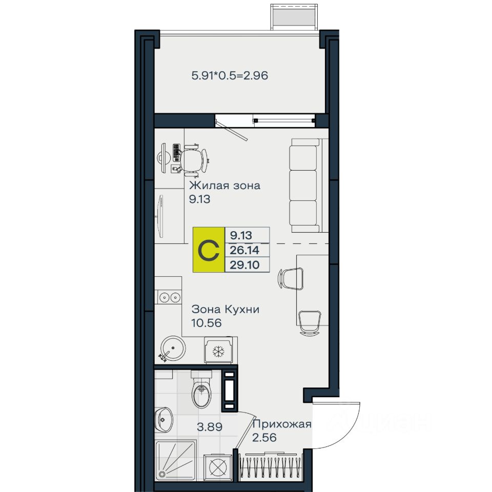 Общая площадь29,1 м2