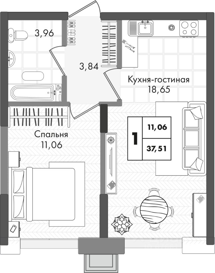 1-комнатная квартира, как 2-комнатная в жилом комплексе Зеленая территория от надежного застройщика СЗ Флагман в Краснодаре.