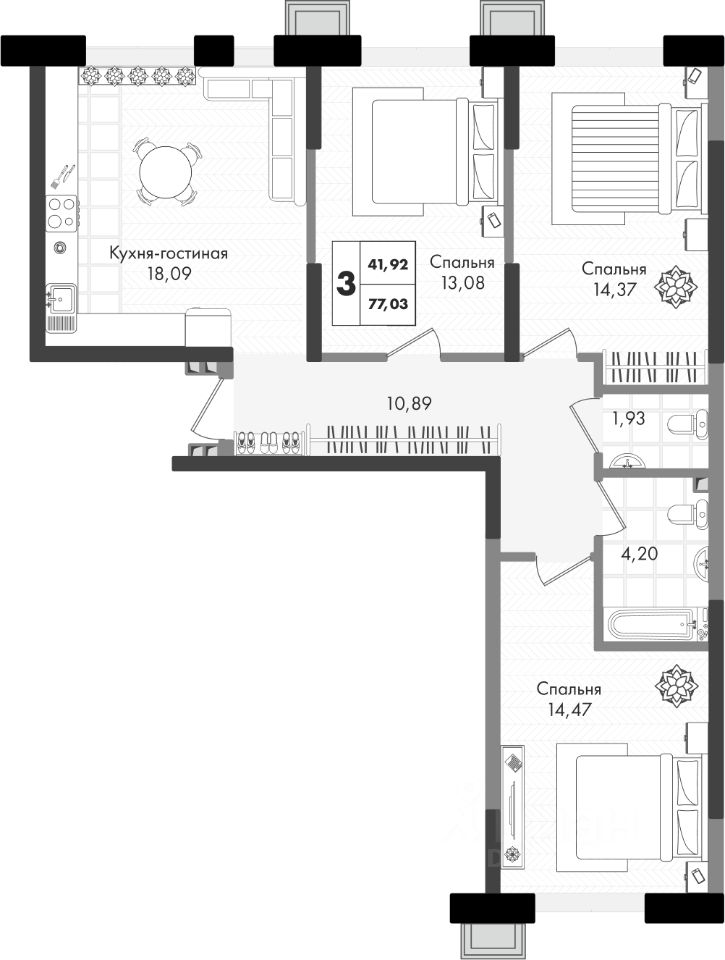 3-комнатная квартира с отапливаемой лоджией в жилом комплексе Зеленая территория от надежного застройщика СЗ Флагман в Краснодаре.