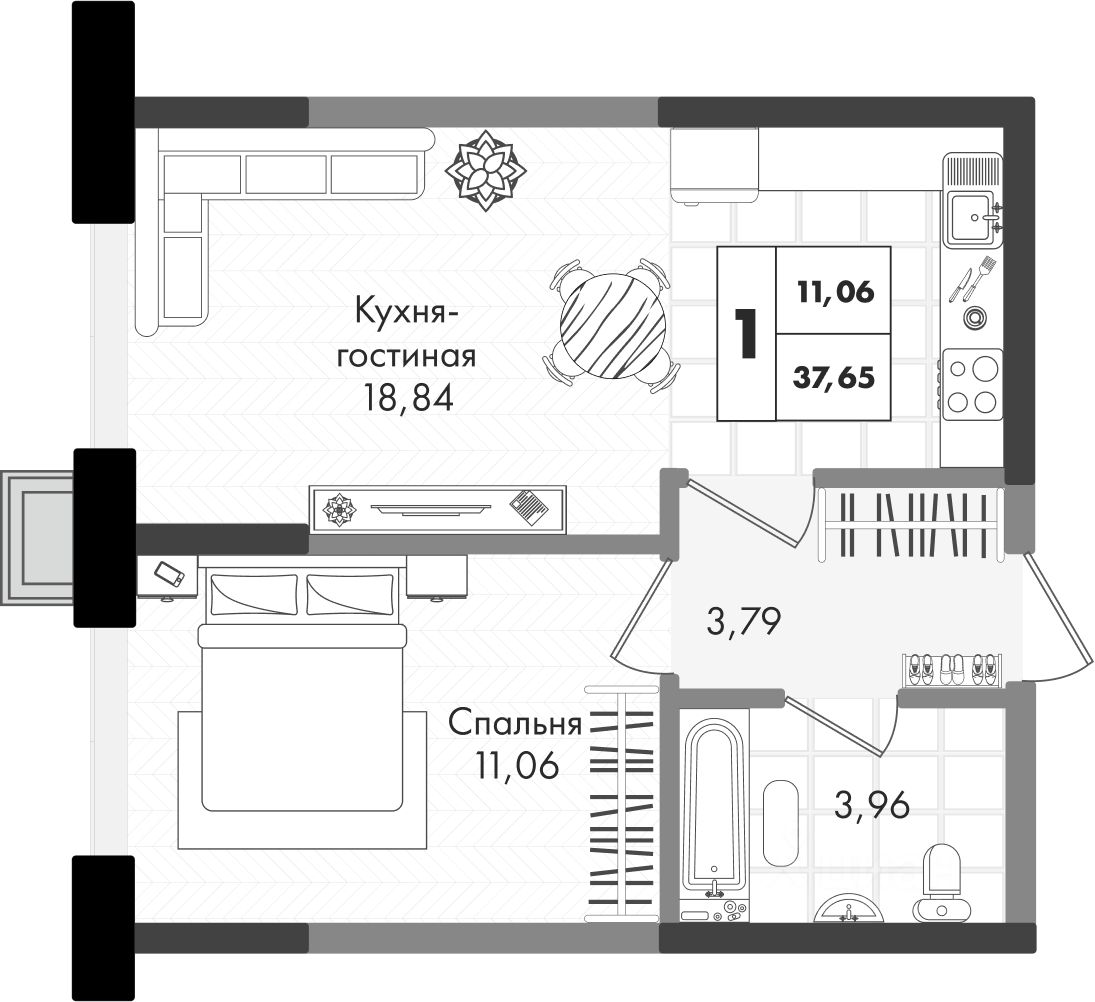 1-комнатная квартира с отапливаемой лоджией в жилом комплексе Зеленая территория от надежного застройщика СЗ Флагман в Краснодаре.
