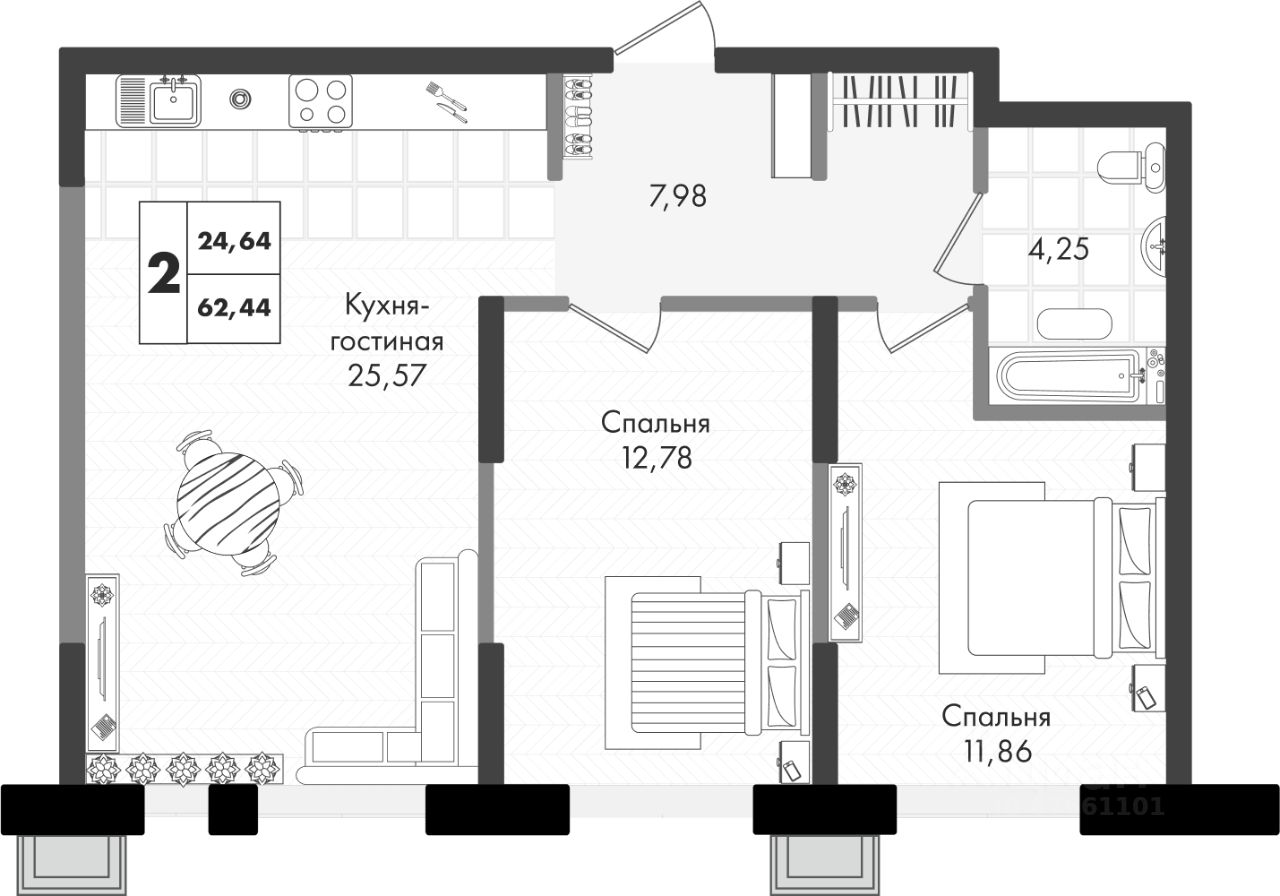 продам 2-к, им генерала Брусилова, 59 799 334 ₽
