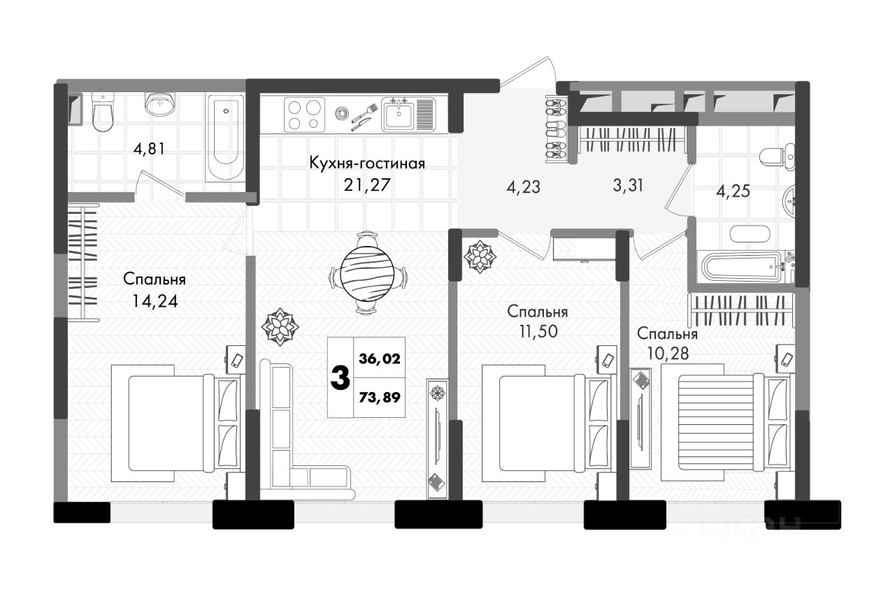 3-комнатная квартира с умной планировкой в жилом комплексе Зеленая территория от надежного застройщика СЗ Флагман в Краснодаре.