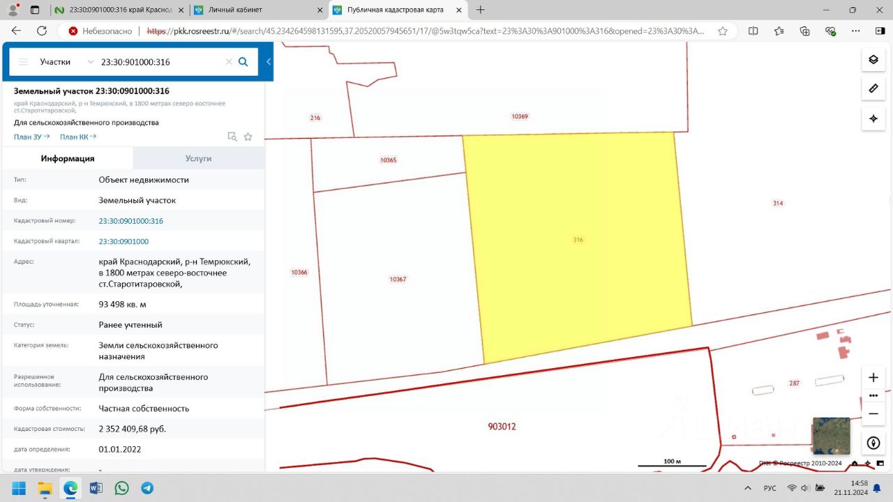 Площадь участка - 9,35 га. Категория земель - земли сельскохозяйственного назначения. Вид разрешённого использования - для сельскохозяйственного производства.