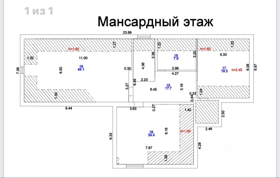 Мансардный этаж: три спальни, сан.узел.