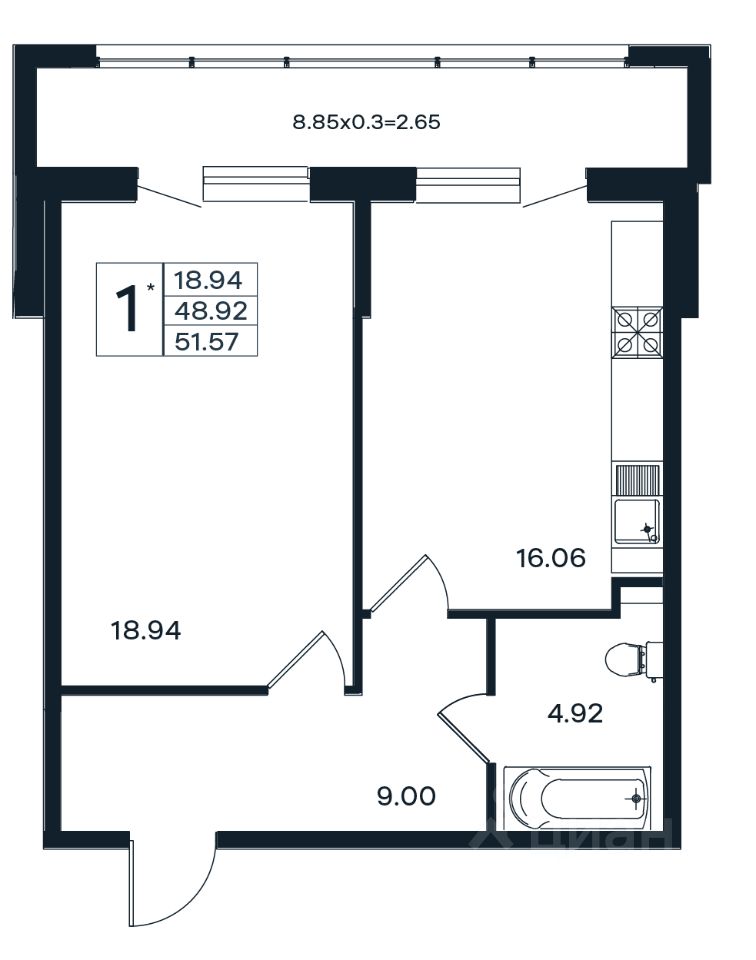 продам 1-к, Шоссе Нефтяников, 2616 800 000 ₽