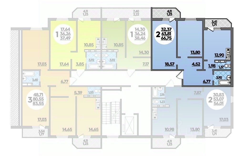 Общая площадь66,75 м2