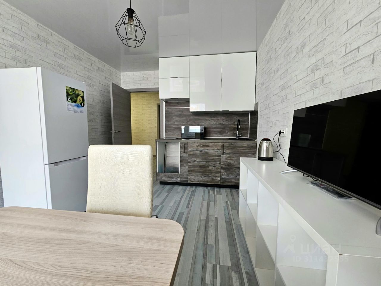 Кухня , 2х комфорочная электро панель , холодильник , обеденный стол , два стула , Телевизор . Интернет .