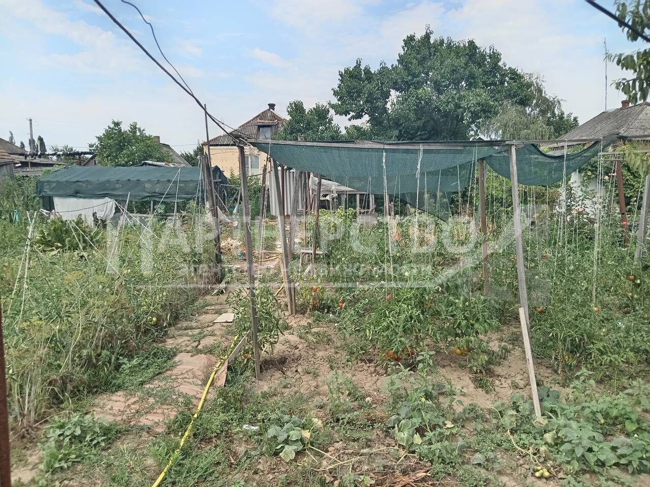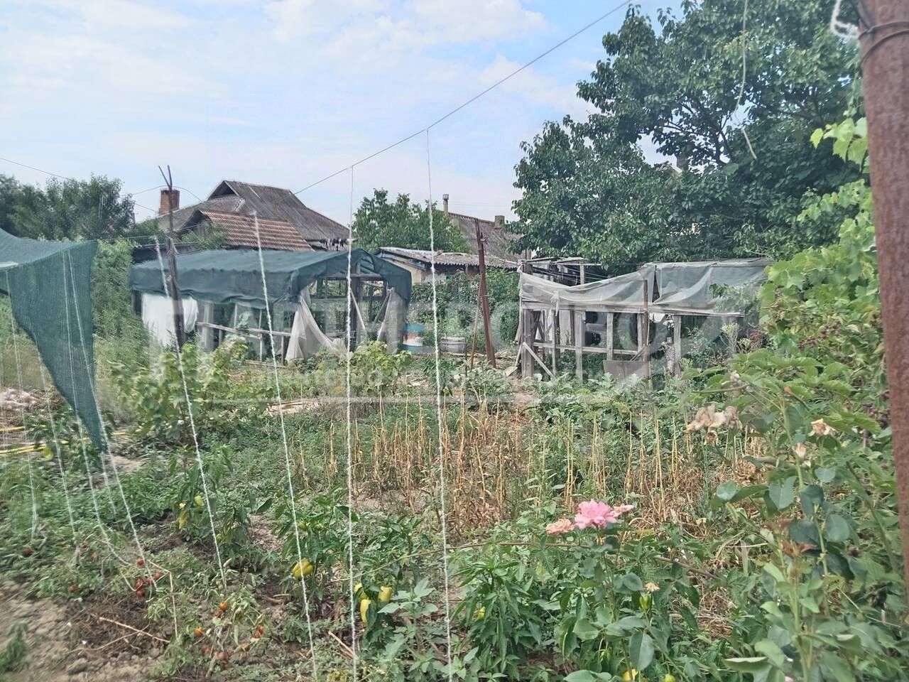 В огороде растут персики, яблоки, груши, черешни, вишни и прочие прелести. Есть ещё колодец для полива. Летняя кухня, навес большой. Магазин продукты в дву{х минутах ходьбы от дома. Детский сад в трёх кварталах и школа.