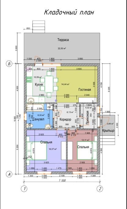 В доме две спальни, просторная кухня-гостиная с выходом на террасу площадью 22,5 кв. м., санузел.