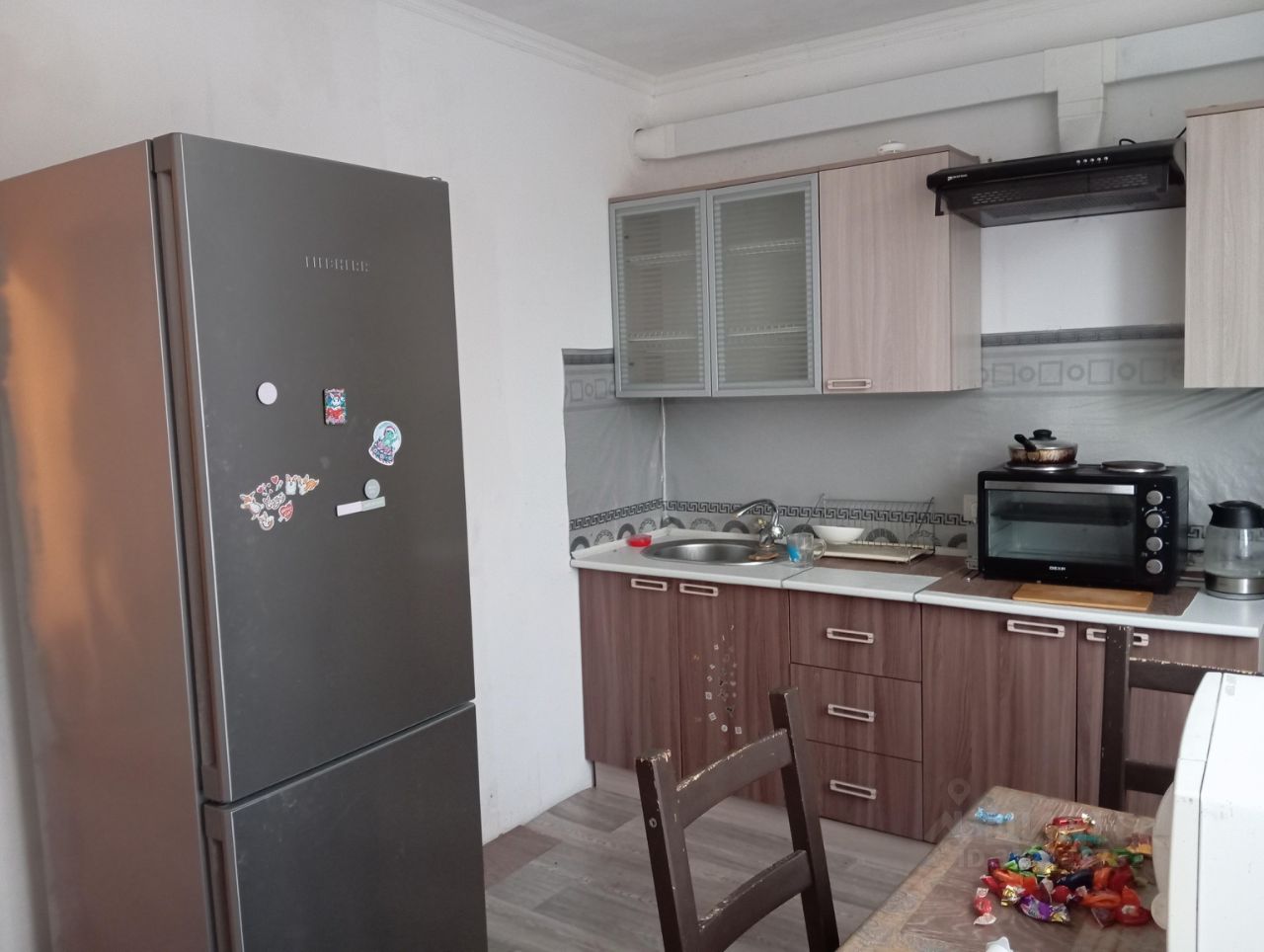 Квартира с косметическим ремонтом, поэтому здесь приятно находиться. В наличии вся необходимая мебель для комфортного проживания: кухня полностью оборудована, есть мебель и в комнате. Из техники — холодильник и стиральная машина. Санузел совмещённый, в ванной комнате установлена ванна.