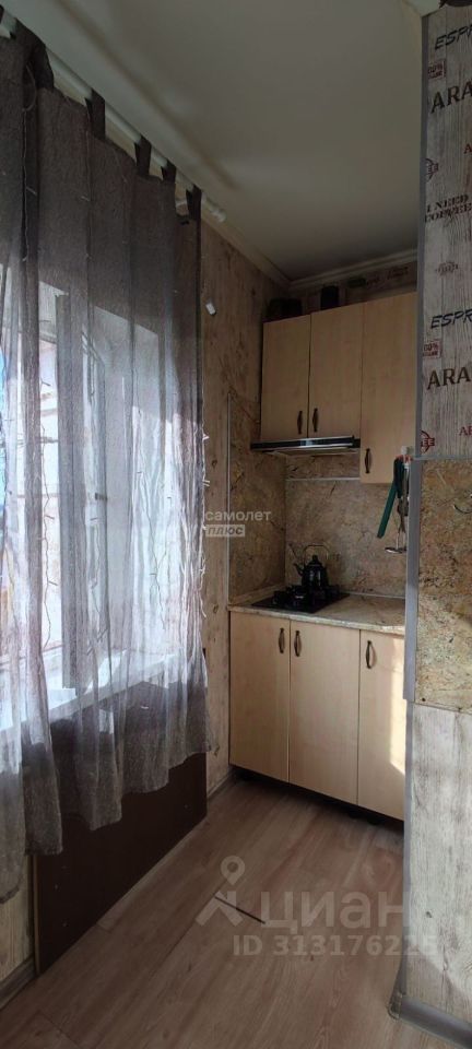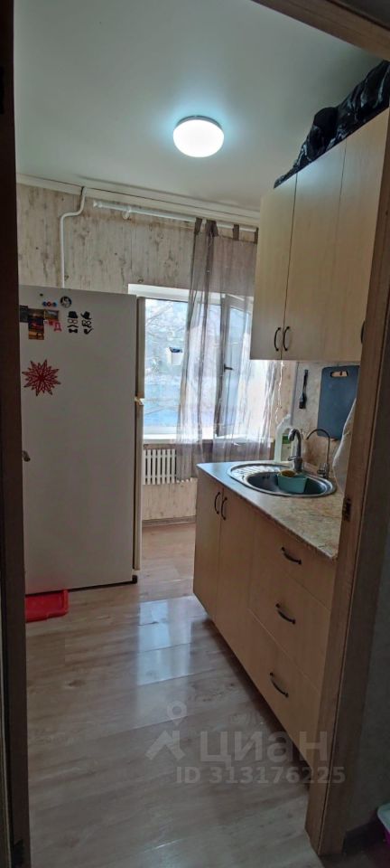 Квартира общей площадью 26,8 кв. м., комната 13,6 кв. м., кухня 5,4 кв. м., прихожая 4,9 кв. м., сан. узел раздельный 2+0,9 кв. м., окна выходят во двор.
