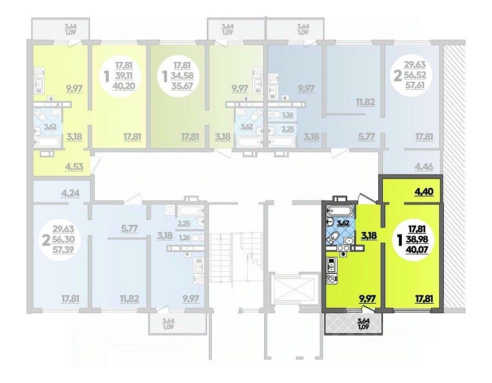 Общая площадь40,07 м2