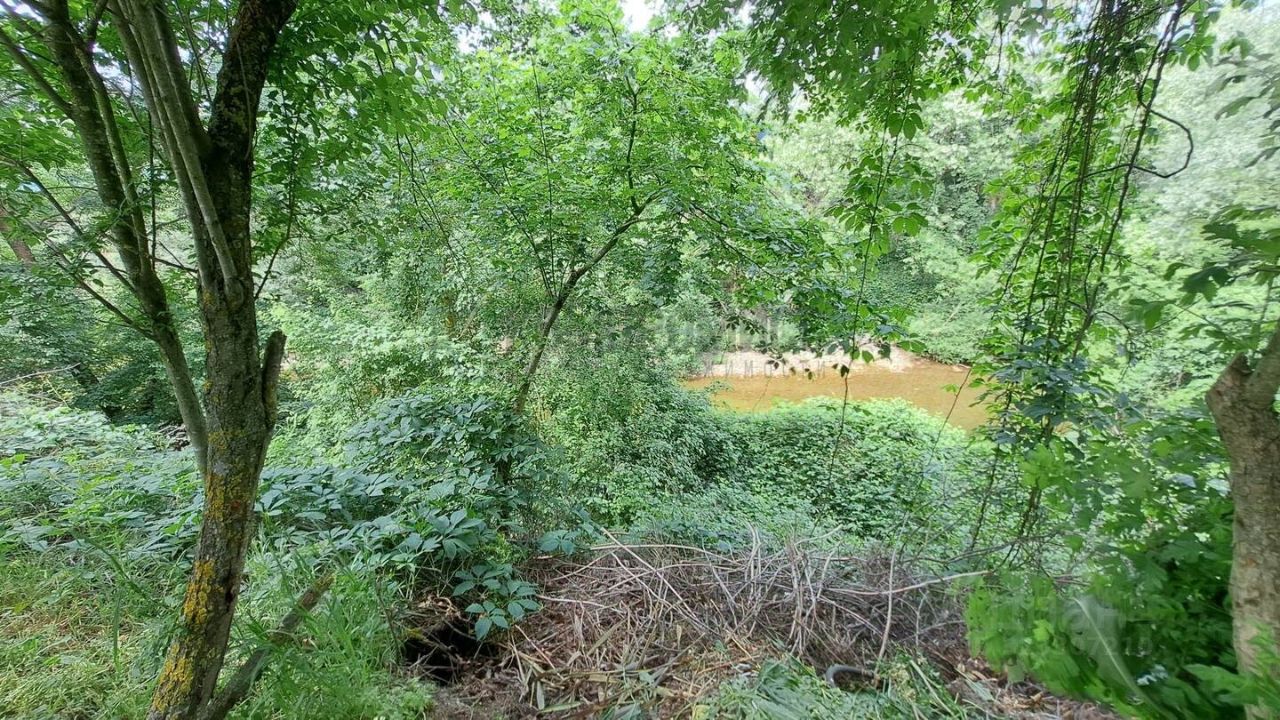 Участок 15 соток.Фасад участка 23 метров, в длину - 60 метров. Участок правильной прямоугольной формы с выходом на живописную речку. На участке имеется: 1. Двор забетонирован, есть заезд для машины во двор, новый аккуратный навес, ворота металлические распашные и калитка, 2. летний душ( есть бочка) хоз.постройка с железа , 3. плодоносящий сад и палисадник.