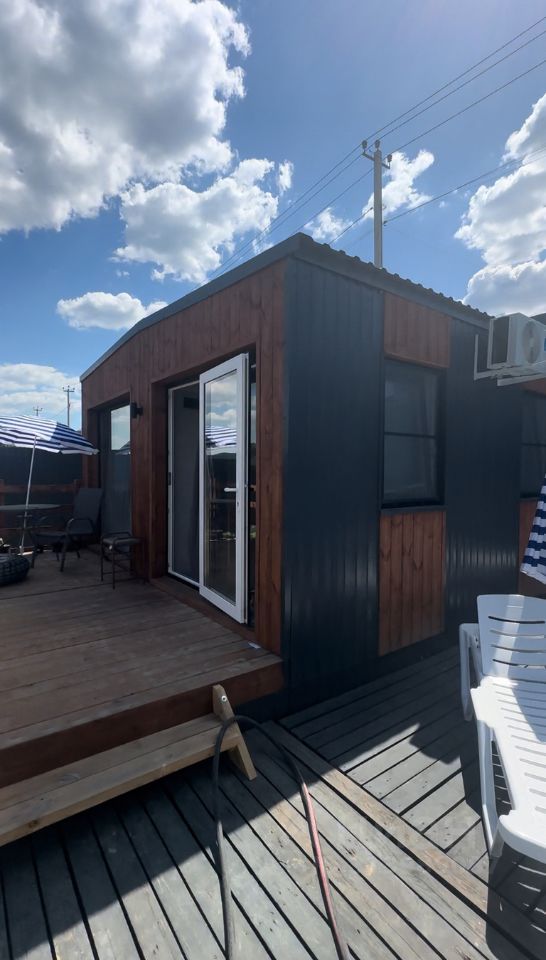 ХАРАКТЕРИСТИКИ ЗДАНИЯ: Размер 8х4,8х3, площадь 38 кв.м. Каркас выполнен из профильной трубы 80х80 толщина металла 3 мм, металл покрыт антикоррозийным грунтом. Двери: Метало пластиковые Окна: Метало пластиковые Стены, пол и потолок утеплены минеральной ватой 100 мм Варианты внутренней отделки стен: вагонка штиль. Варианты отделки потолка: вагонка штиль. Пол: метало каркас 50х50 мм, лаги 100х40, утеплитель, ОSВ-15мм, ламинат 33 класс, сетка от грызунов. Наружная отделка: цветной проф лист/имитация бруса. Сан.узлел стены, пол выложен кафель, установлен фаянс и все что нужно для эксплуатации. Установлена мебель, бытовая техника, система кондиционирования. Электрика и инженерная разводка выполнена, установлены электро точки!