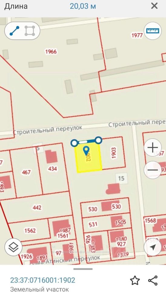размер участка 5 соток ,ИЖС ,в собственности, не СНТ, угловой 20*24.7, активно застраивается,соседи строят , живут!