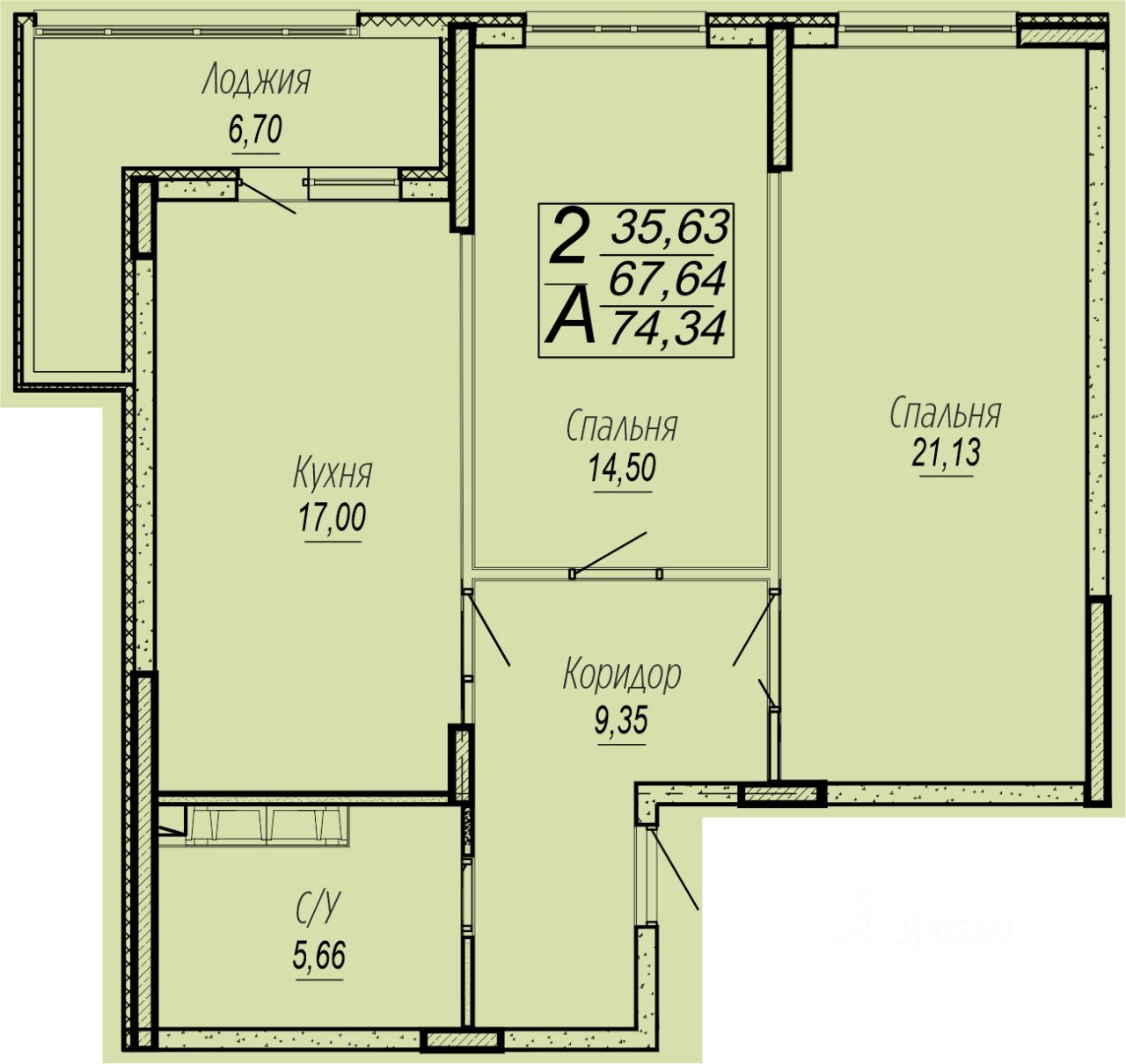 Общая площадь74,3 м2