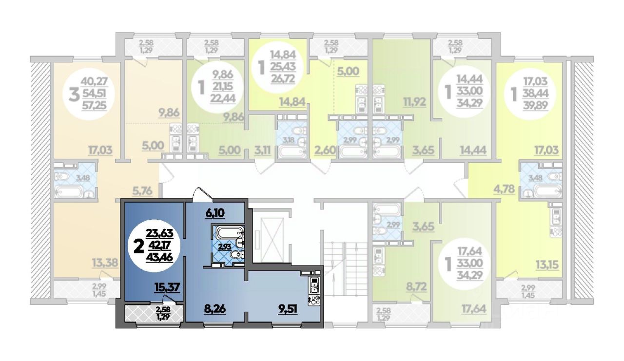 Общая площадь43,46 м2