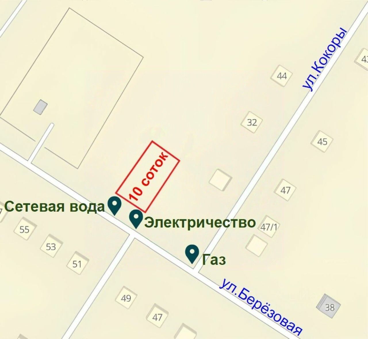 Газ сетевой проходит по фасаду участка. Электричество 3 фазы, 15 кВт (рядом с участком опора и распределительный пункт). Вода сетевая проходит по фасаду участка. Наличие коммуникаций значительно упростит процесс строительства и позволит сразу же начать пользоваться участком.