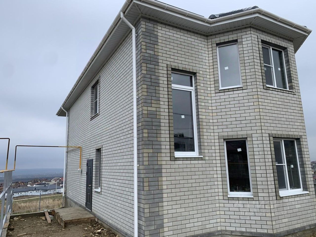 Монолитно блочный дом, внешние стены: блок, утеплитель, кирпич.