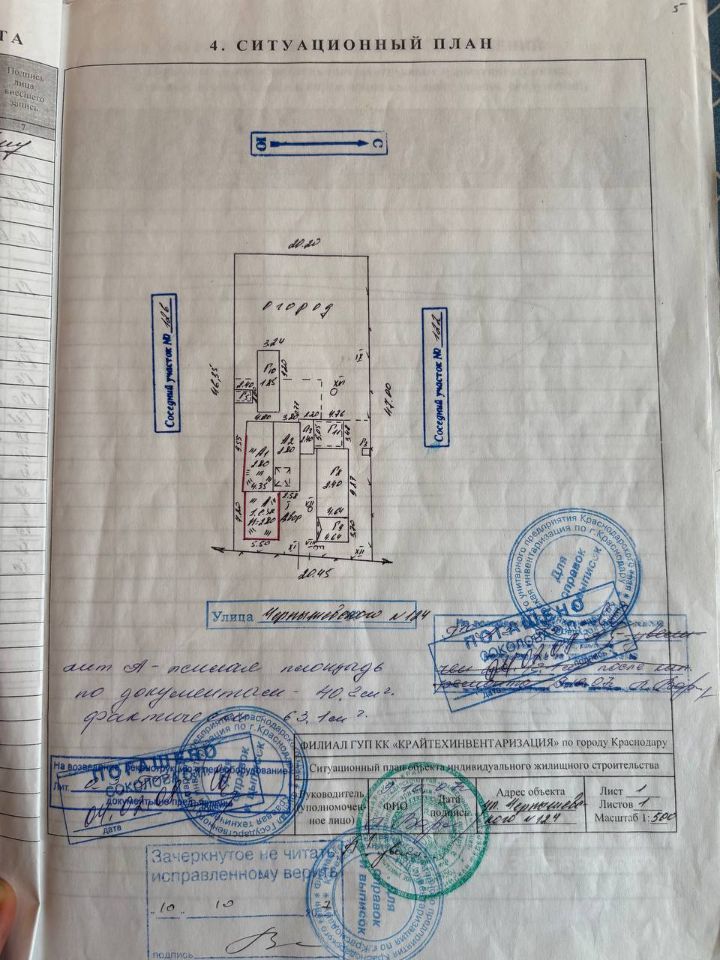 Продаётся земельный участок площадью 9,16 сотки, кадастровый номер 23:43:0144013:11 по улице Чернышевского, 124 для индивидуального жилищного строительства Форма участка прямоугольная, фасад - 20,5 метров На участке расположен одноэтажный жилой дом площадью 100,5 кв.м с хозяйственными постройками В доме можно жить, а на участке реализовать собственные идеи, построив новый дом своей мечты, который полностью будет соответствовать Вашим пожеланиям На земельный участок заведены центральные коммуникации: вода, свет, газ, канализация - септик Перед участком большая зона отчуждения площадью 250 кв.м (20,5 х 12,2 метров)