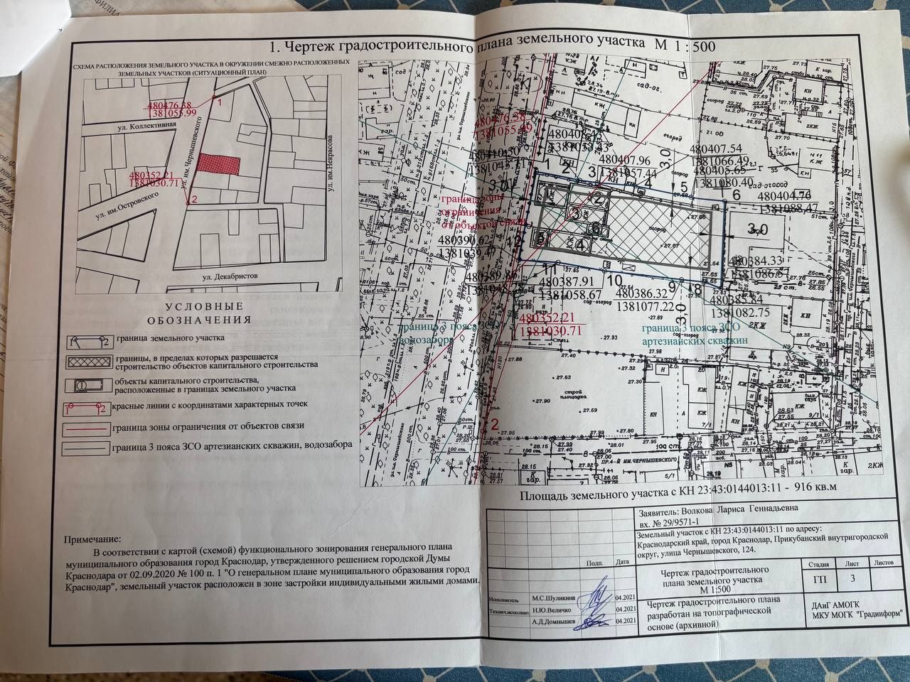 Продаётся земельный участок площадью 9,16 сотки, кадастровый номер 23:43:0144013:11 по улице Чернышевского, 124 для индивидуального жилищного строительства Форма участка прямоугольная, фасад - 20,5 метров На участке расположен одноэтажный жилой дом площадью 100,5 кв.м с хозяйственными постройками В доме можно жить, а на участке реализовать собственные идеи, построив новый дом своей мечты, который полностью будет соответствовать Вашим пожеланиям На земельный участок заведены центральные коммуникации: вода, свет, газ, канализация - септик Перед участком большая зона отчуждения площадью 250 кв.