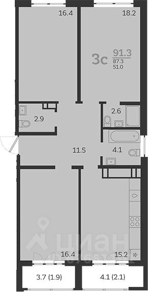 Общая площадь91,3 м2