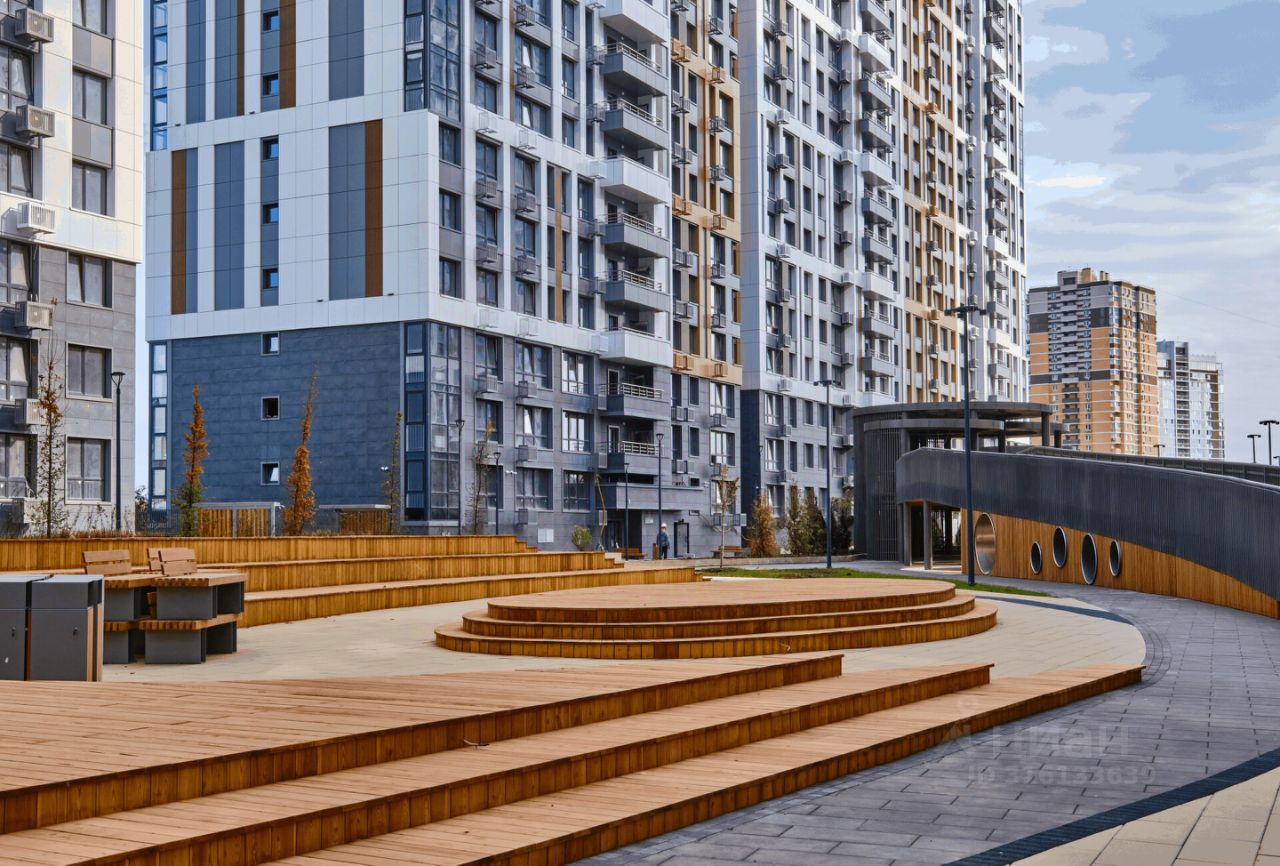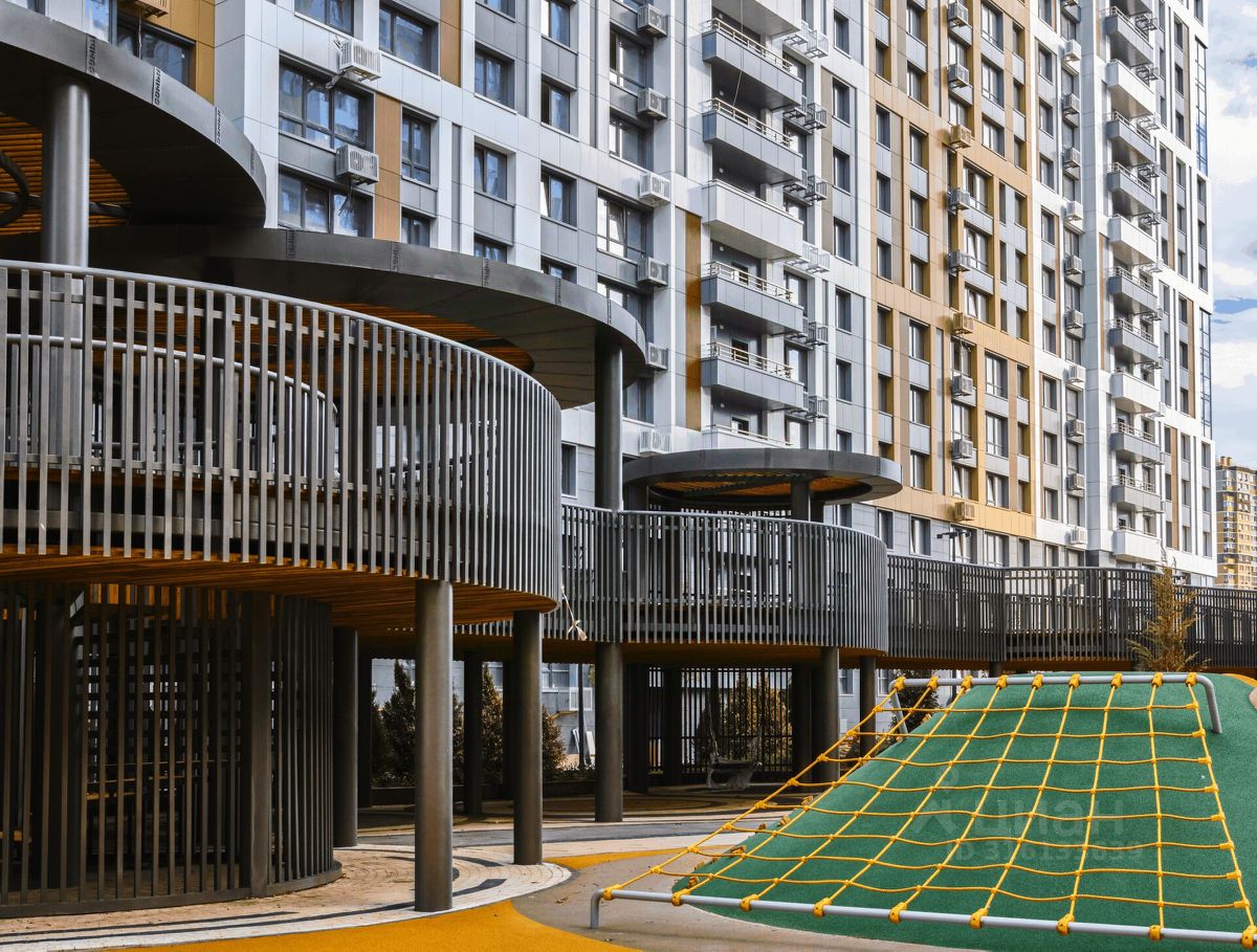 Вход на охраняемую территорию комплекса осуществляется по Face ID. На стилобате создан уникальный двор-парк с современными игровыми плейхабам и спортивными площадками. Так зона коммерческого кластера с магазинами, пунктами доставки, аптеками и кафе отделена от зоны для отдыха и прогулок.