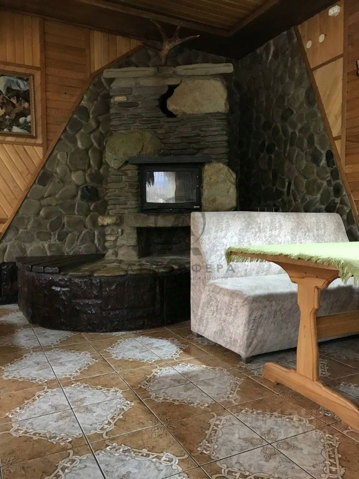 На первом этаже расположены: два банкетных зала, барная стойка, балкон с панорамным видом на горы, в том числе вершину г. Индюк, туалет для гостей, кухня, кладовая, гардеробная, мангальная зона, место для хранения дров, туалет и душ для персонала.