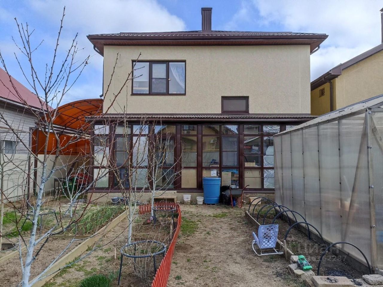 Сад на участке с плодоносящими деревьями