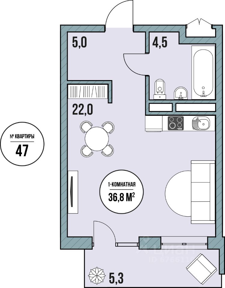 Общая площадь36,8 м2