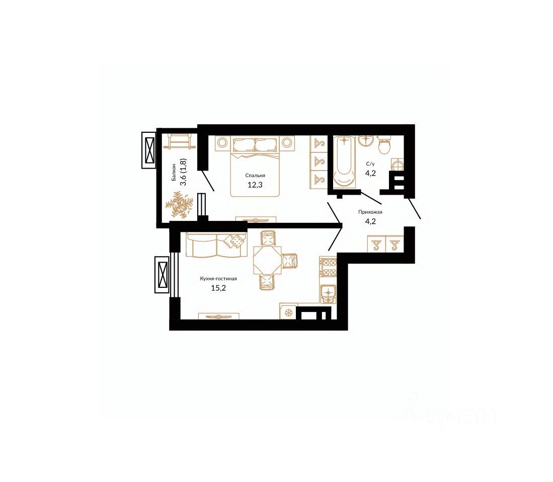 Кухня15,2 м2