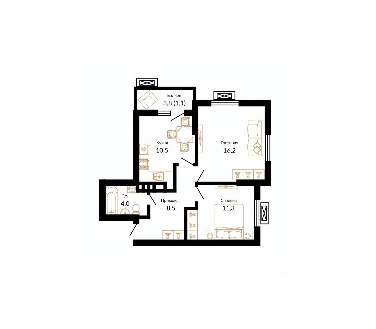 Общая площадь51,9 м2