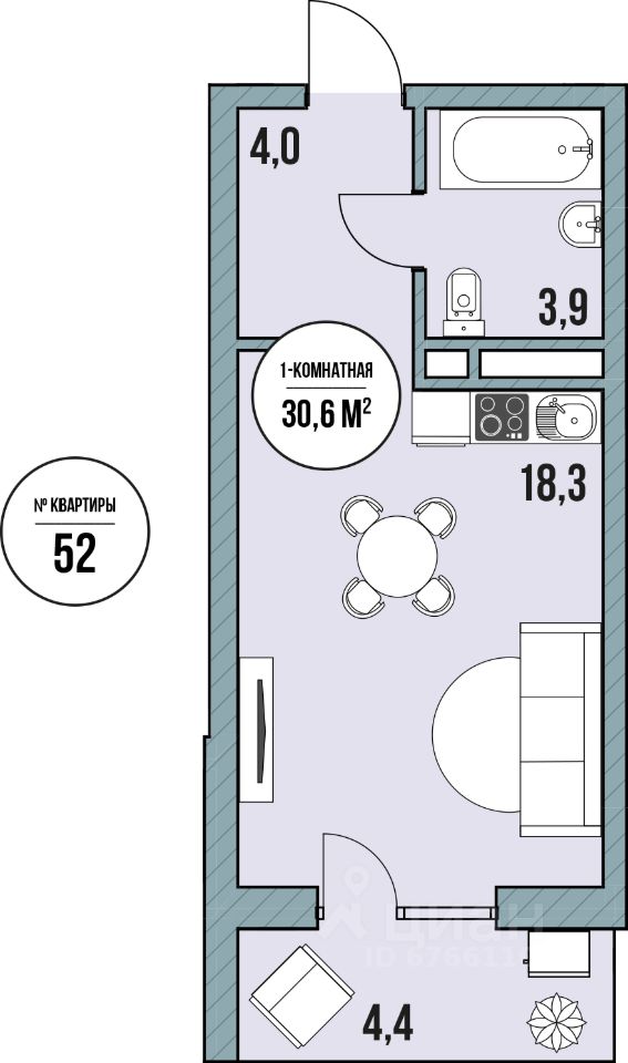 Общая площадь30,6 м2