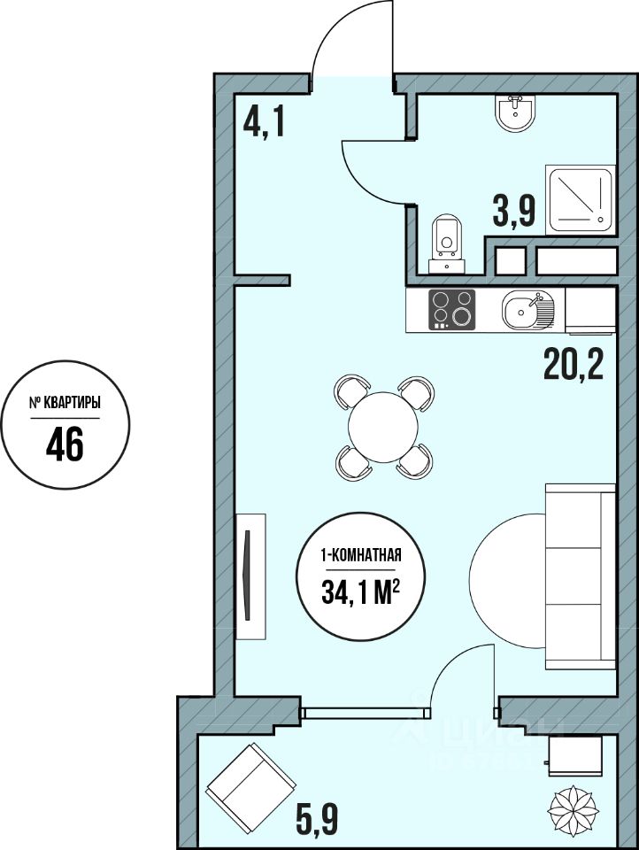 Общая площадь34,1 м2