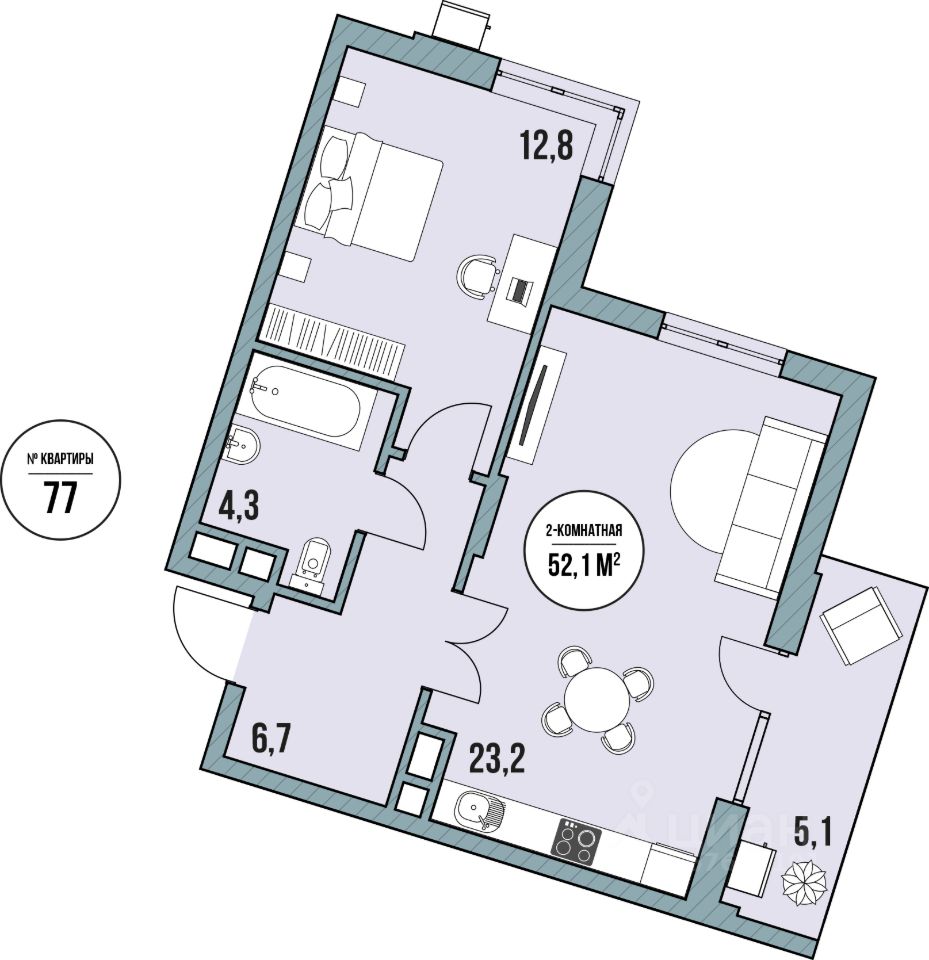Общая площадь52,1 м2