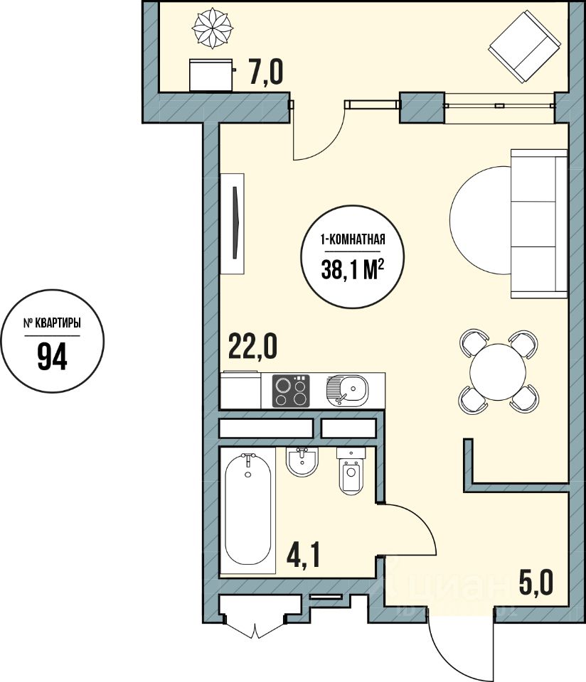 Общая площадь38,1 м2