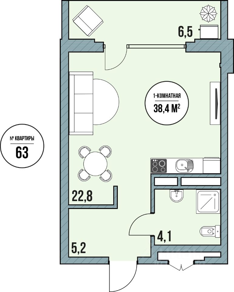Общая площадь38,4 м2