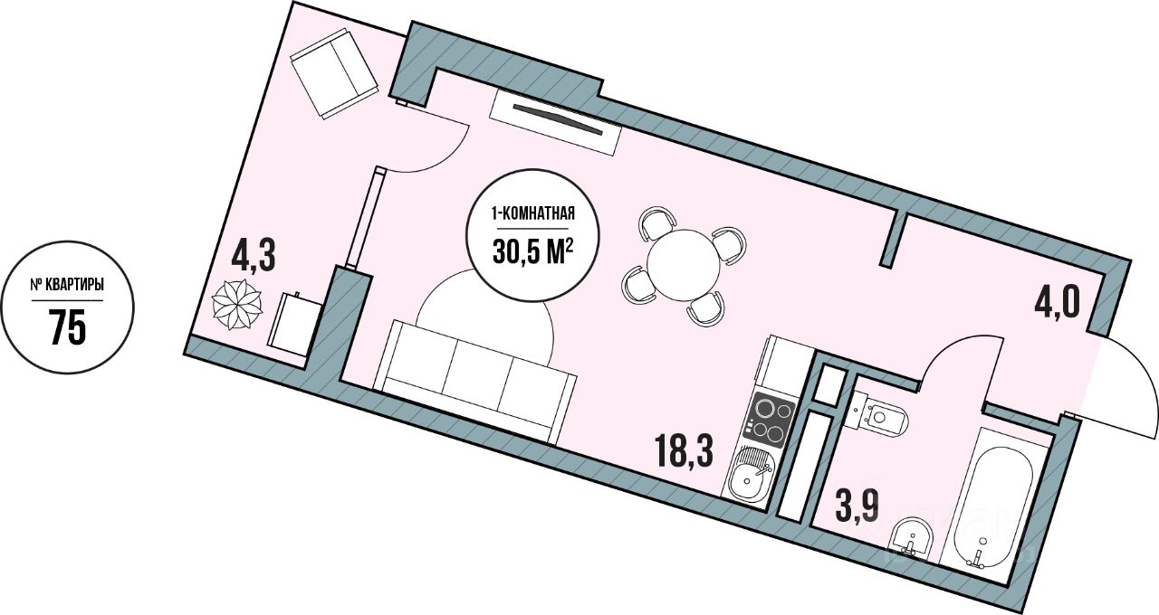 Общая площадь30,5 м2
