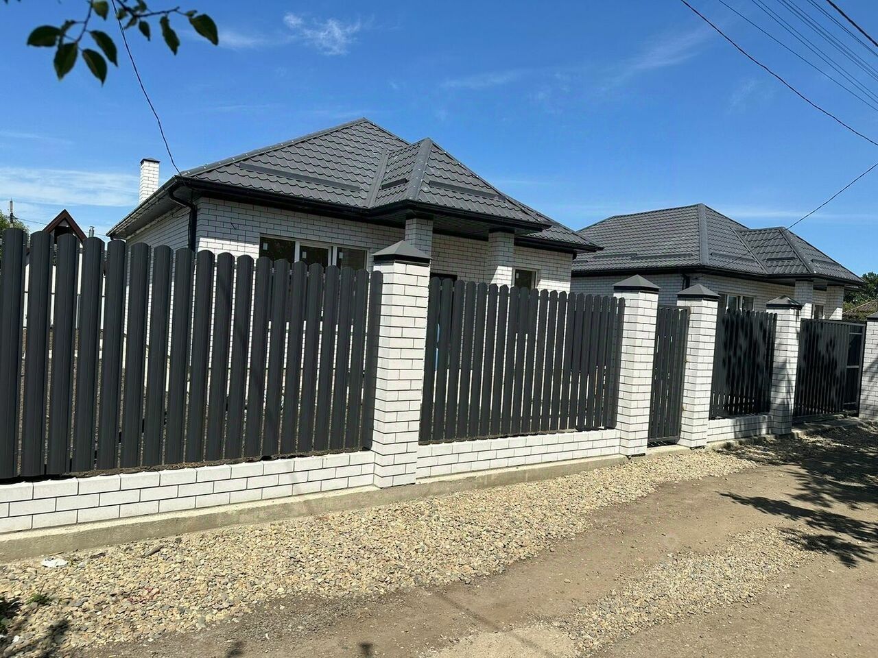 Есть два дома, 90 кв.м общая площадь, 3 комнаты и кухня гостинная с выходом на террасу, Котельная вход со двора. В доме теплый пол, разводка электричества. Предчистовая отделка.