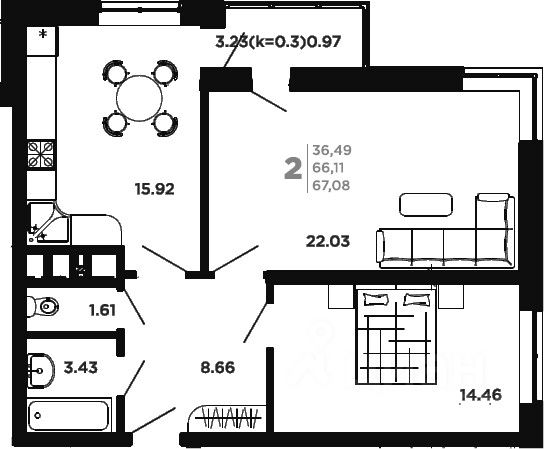 Общая площадь67,8 м2