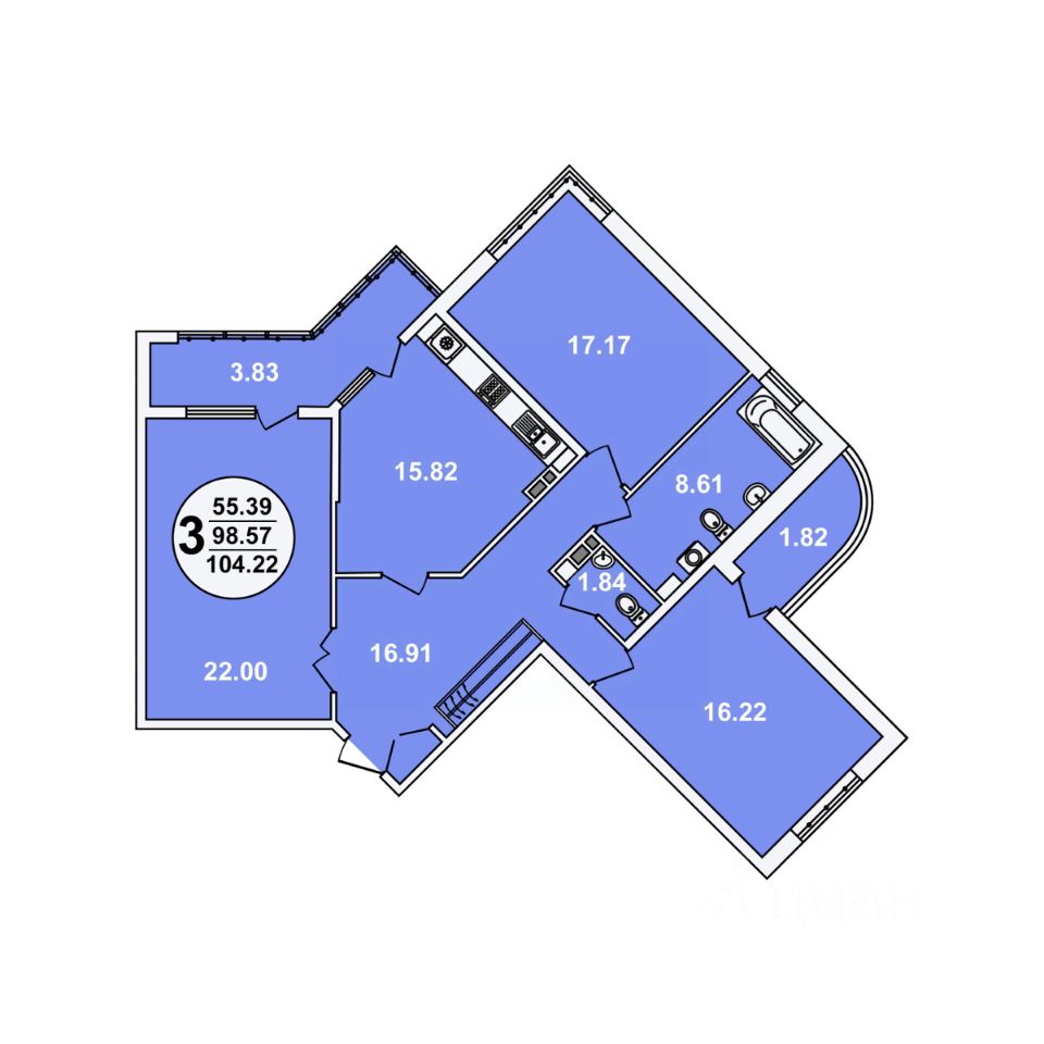 продам 3-к, Шоссе Нефтяников, 18 корп. 422 958 400 ₽