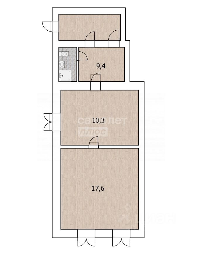 Квартира 37 кв. м (''евродвушка''), на первом этаже одноэтажного дома. Кухня-гостиная - 10,3 кв. м, комната 17,6 кв. м. Сделан ремонт, отопление от электрообогревателей и печное, вода центральная, горячая вода от водонагревателя на 100 литров. Санузел совмещённый: установлен душевой поддон, раковина и унитаз. Во дворе есть земельный участок, площадью 1 сотка для огорода и зоны отдыха. При продаже остаётся вся мебель, бытовая техника - по договорённости.