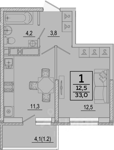 Общая площадь33 м2